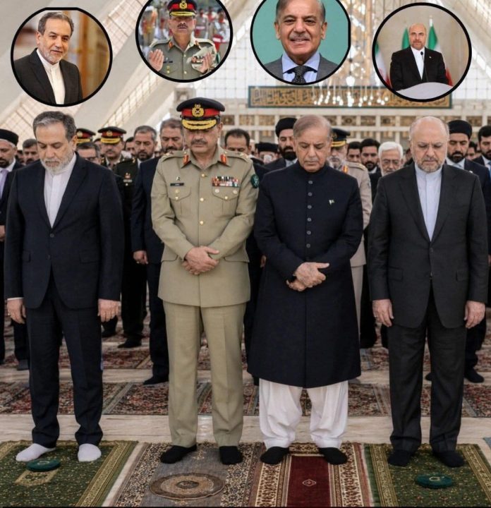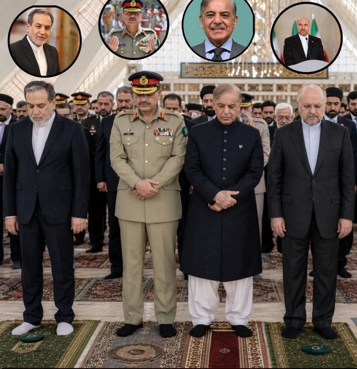 نشر فيلق خاتم الأنبياء، اليوم السبت (11 نيسان 2026) صورة قال إنها لصلاة العصر تجمع الوفدين الإيراني والباكستاني، بالتزامن مع انطلاق المفاوضات بين أميركا وإيران بوساطة باكستانية في إسلام آباد. وتظهر الصورة صلاة جماعية سنية شيعية يظهر فيها وزير الخارجية الإيراني عباس عراقجي ورئيس البرلمان محمد باقر قاليباف إلى جانب الرئيس الباكستاني شهباز شريف وقائد الجيش الباكستاني المشير عاصم منير.