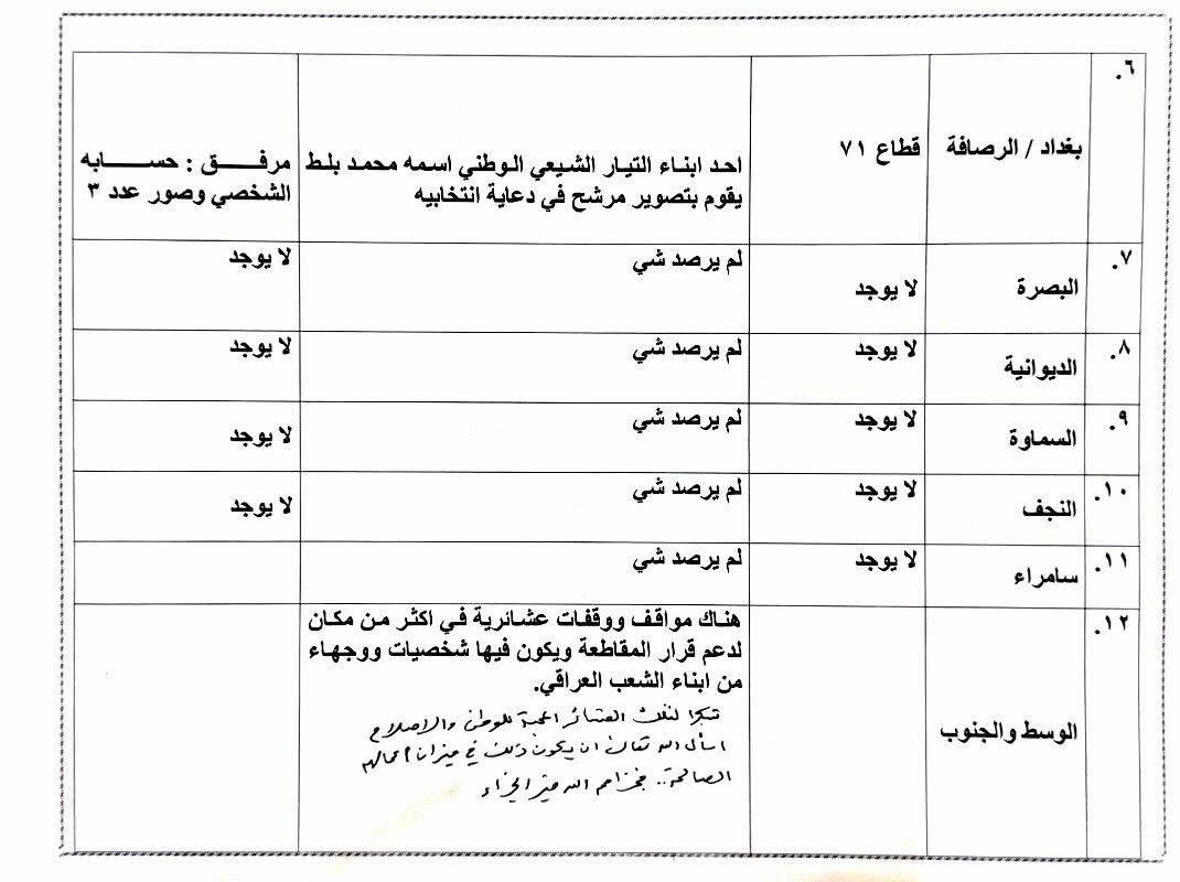 اطلع سماحة السيد مقتدي الصدر على بعض النشاطات في المكتب الخاص بالنجف الأشرف، وآشاد بالعشائر الداعمة لمقاطعة الانتخابات، معلقاً: "شكرًا لتلك العشائر المحبة للوطن والإصلاح، أسأل اللّٰه أن يكون ذلك في ميزان أعمالهم الصالحة.. فجزاهم اللّٰه خير الجزاء".